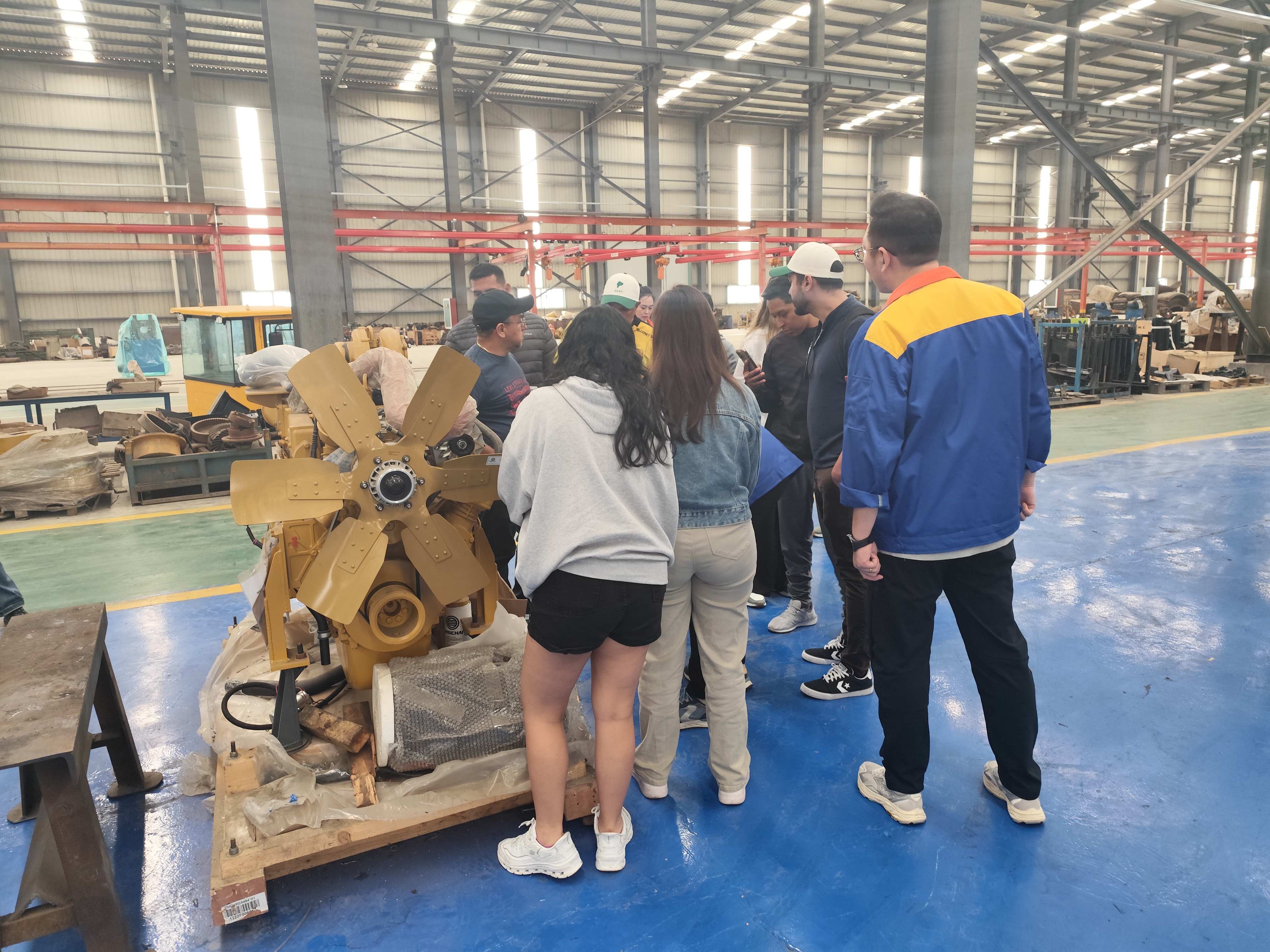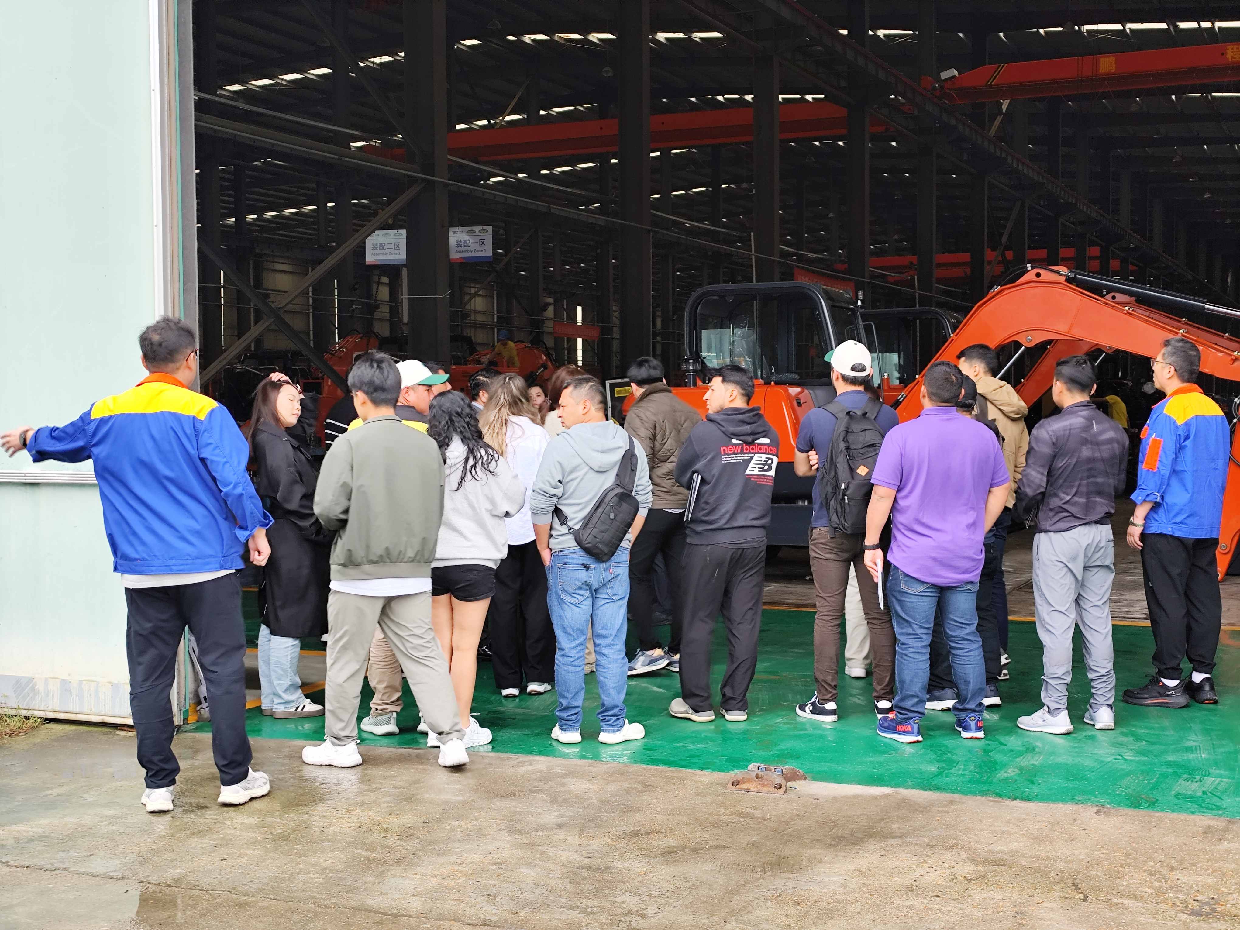 În prima zi a vizitei, cu însoțirea entuziastă a președintelui companiei și a echipei de conducere superioară, delegația clienților a vizitat în profunzime zona centrală de producție a companiei. Delegația sa concentrat pe inspectarea zonelor de expunere a produselor de mari dimensiuniexcavatoare pe șenile, încărcătoare pe roți, și mini încărcătoare. Echipa noastră de ingineri seniori a oferit explicații profesionale bilingve pe parcursul întregului proces, elaborând în detaliu conceptul de proiectare a produsului, parametrii tehnici de bază, adaptabilitatea la condițiile de lucru și punctele de întreținere. Clienții au manifestat un nivel ridicat de interes profesional și au ridicat multe întrebări specifice cu privire la datele de performanță și consum de combustibil ale echipamentelor la diferite altitudini, umiditate și condiții de sol. Inginerii noștri au oferit răspunsuri satisfăcătoare pe baza expertizei lor tehnice profesionale.